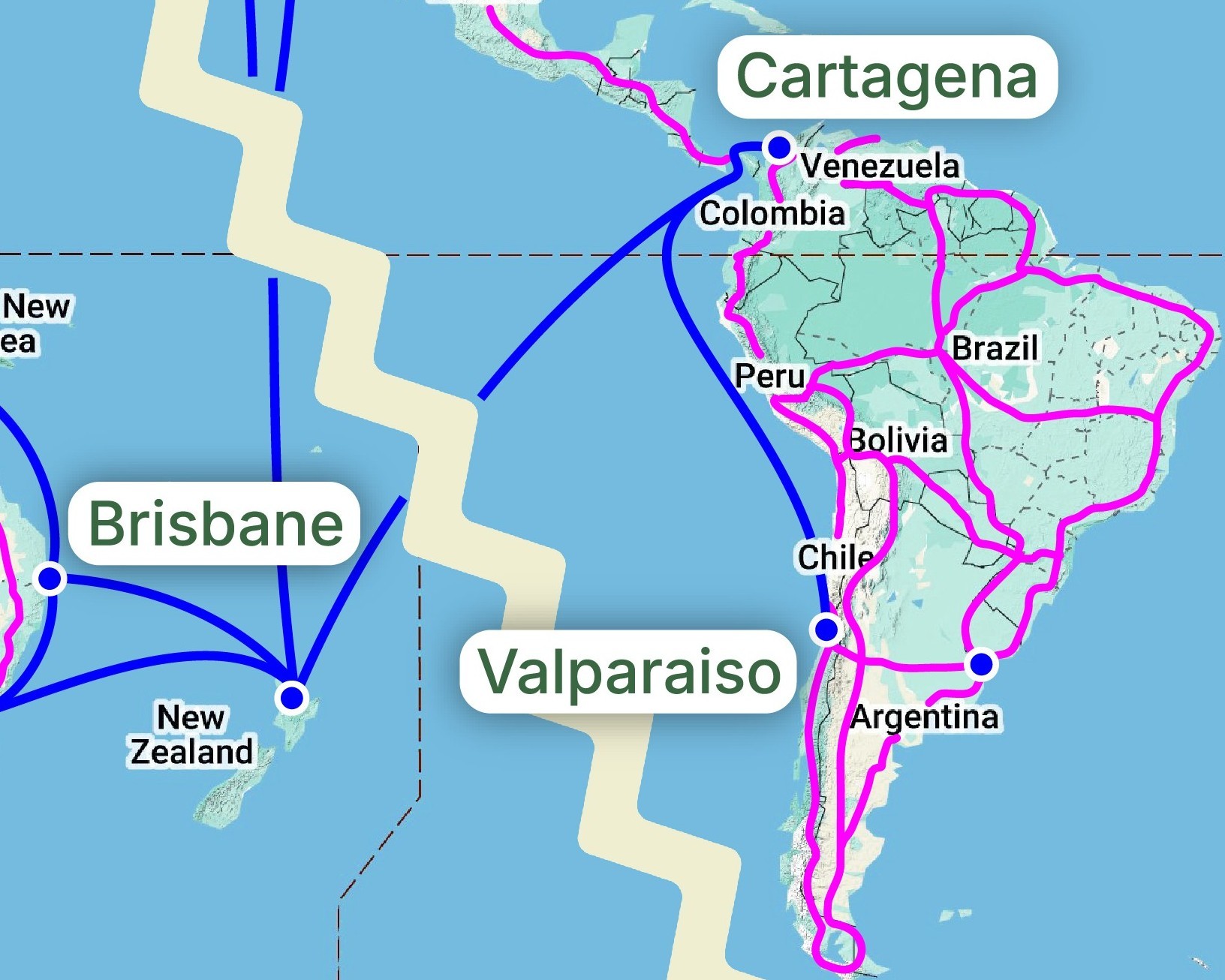 Take note that the trunk line in Chile (first and last legs) has used Panamericana Hwy.